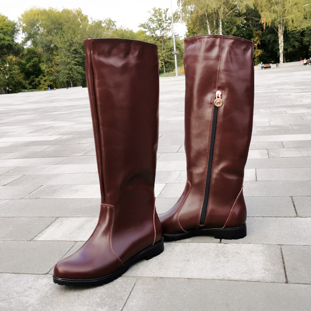 Чоботи-труби жіночі шкіряні на низькому ходу, колір бордо