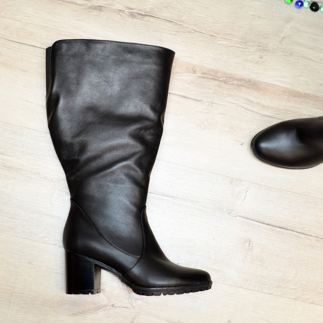 Чоботи чорні шкіряні жіночі з широкою халявою
