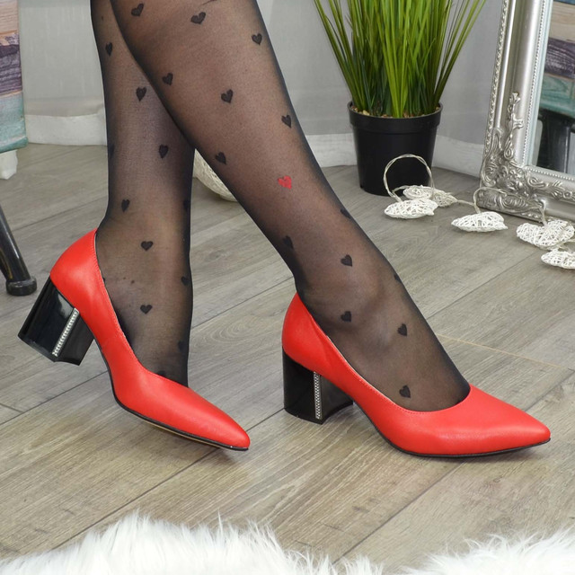 Туфлі жіночі шкіряні на стійкому підборі — класичний дизайн завжди актуальний: як в офісі, так і в повсякденному житті. Ця модель туфель розрахована на стандартну повноту ноги, акуратно виглядають і візуально зменшують ногу. Виготовлені з натуральної шкіри червоного кольору. Підошва блок. Висота каблука 6,5 см.