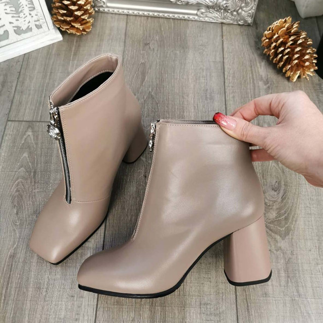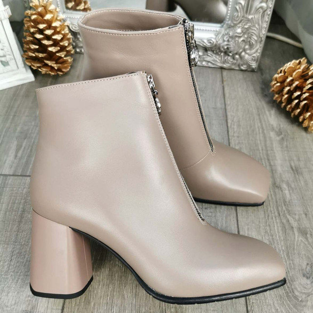 Черевики жіночі шкіряні з квадратним носком. Колір візон