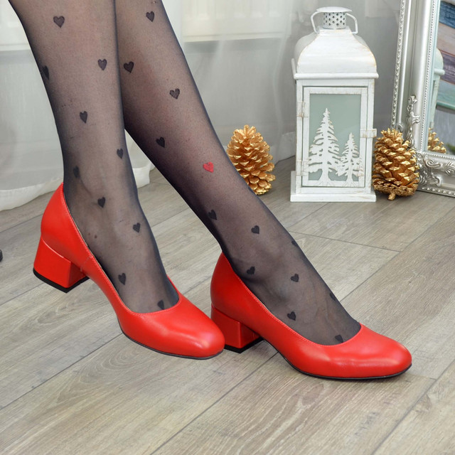 Туфлі шкіряні жіночі на невисокому підборі, колір червоний