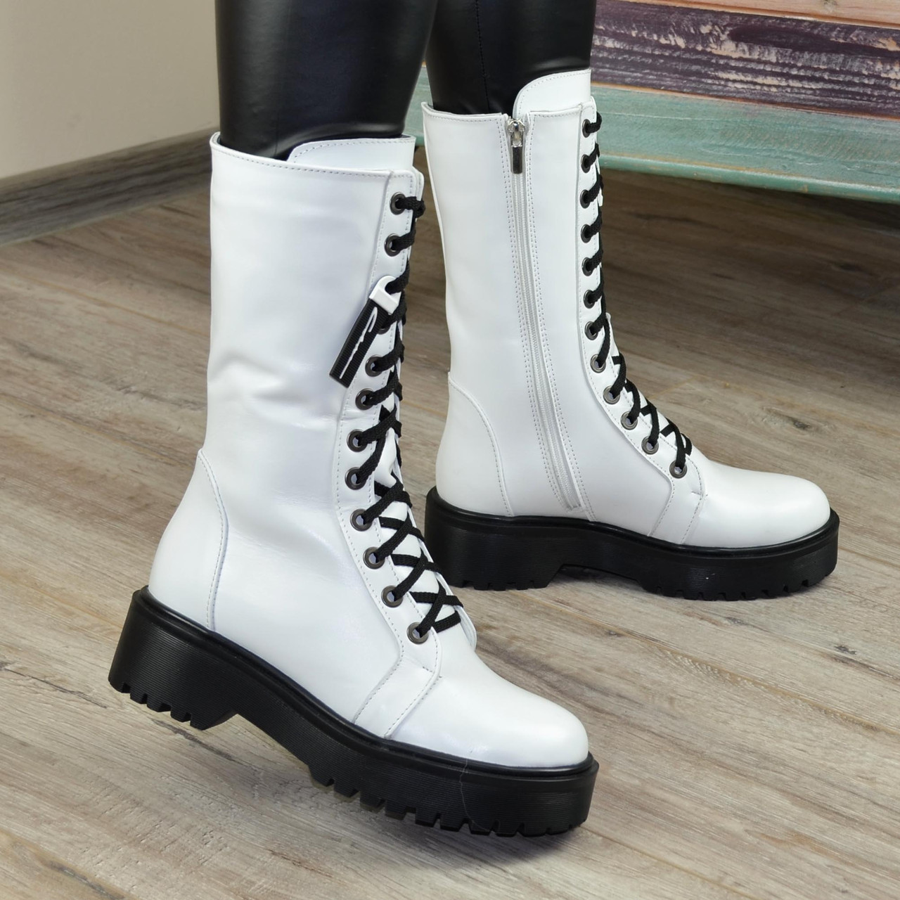 Черевики високі білі жіночі на шнурівці. Натуральна шкіра