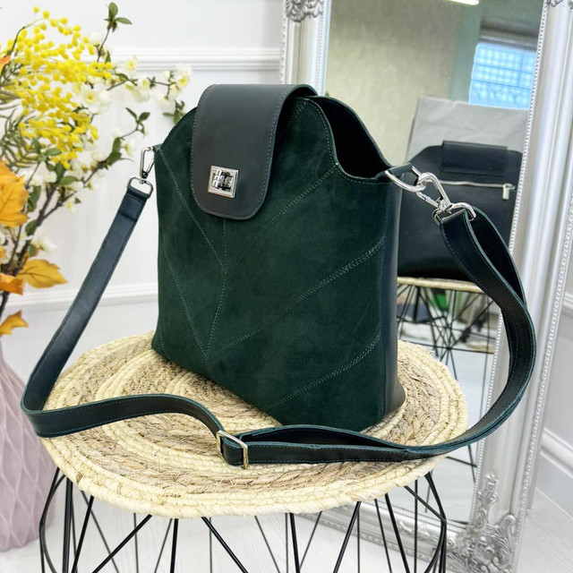 Сумка жіноча комбінована ТМ "Vasha Para". Колір зелений. Натуральна шкіра та замша