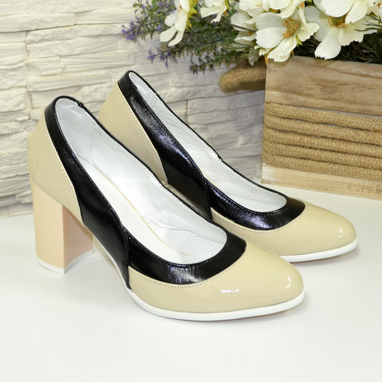 Жіночі туфлі лакові на високих підборах, колір бежево-чорні. 36 розмір